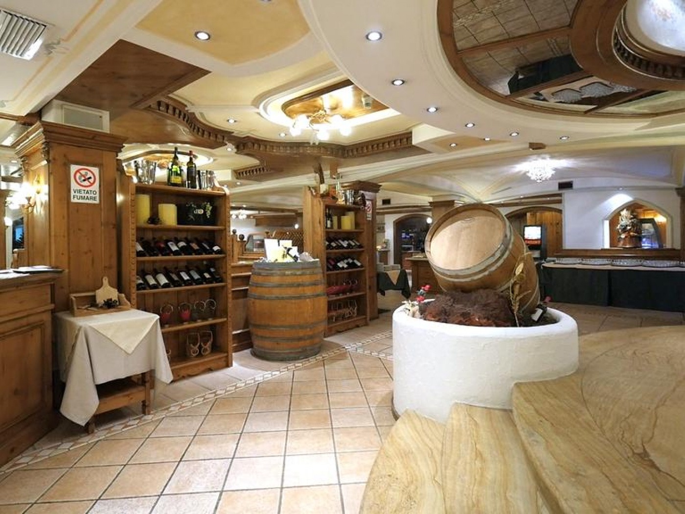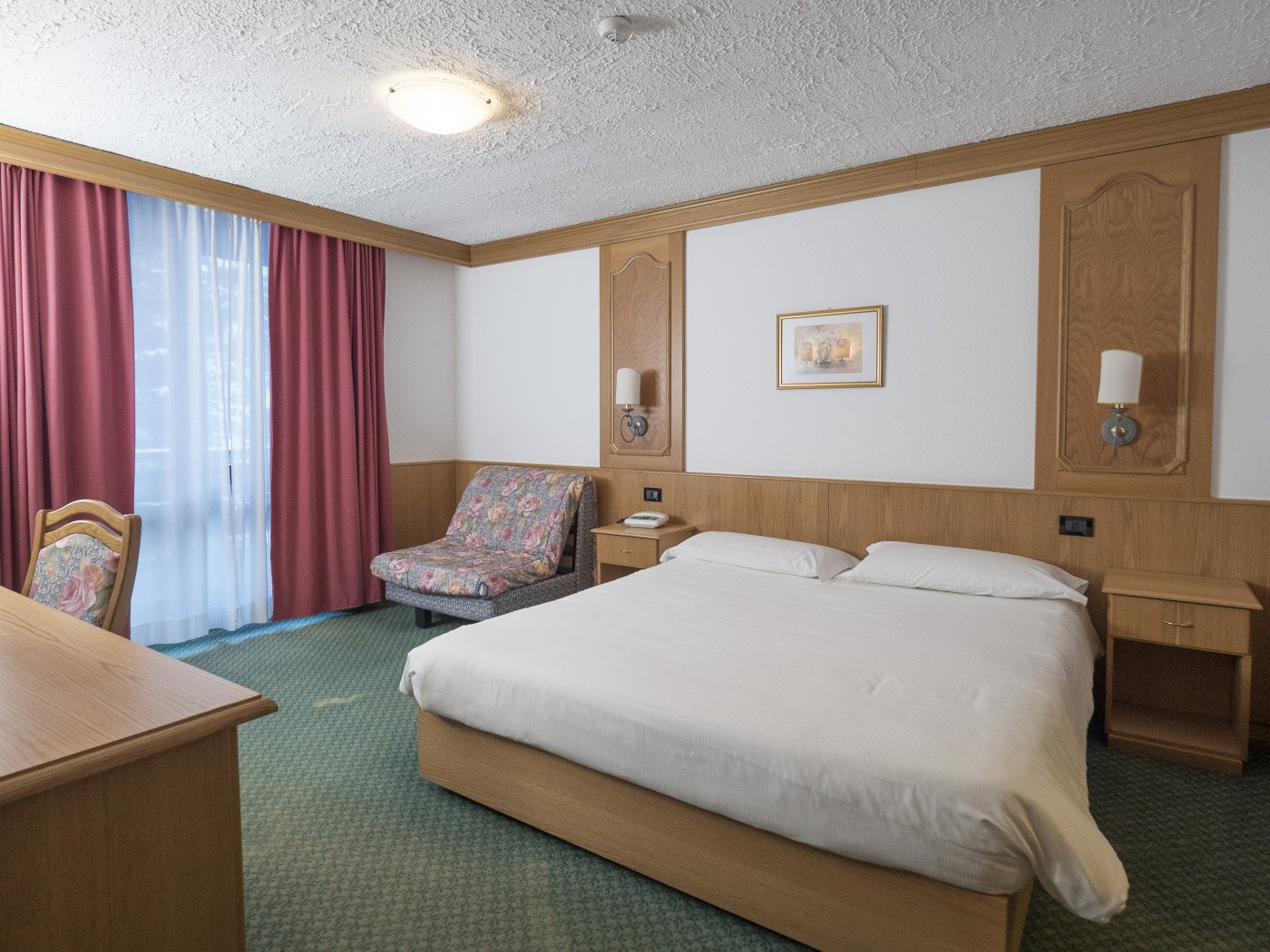 VYBAVENÍ: 160 pokojů, recepce, lobby, krytý bazén o velikosti 7x17 m, menší wellness centrum (sauna, turecké lázně, hydromasáže), restaurace, bar, taverna, dvě konferenční místnosti, dětská herna, úschovna lyží, parkoviště, garáže.