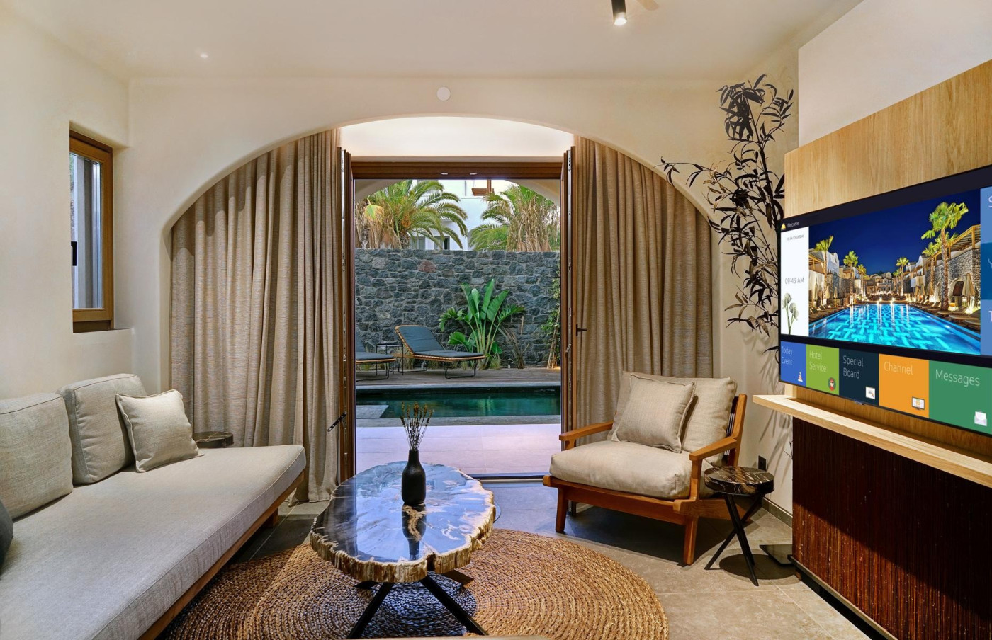 Luxusní ubytování a služby: Ostrov nabízí jedny z nejlepších a nejromantičtějších butikových hotelů na světě, často s infinity bazény a výhledem na kalderu.